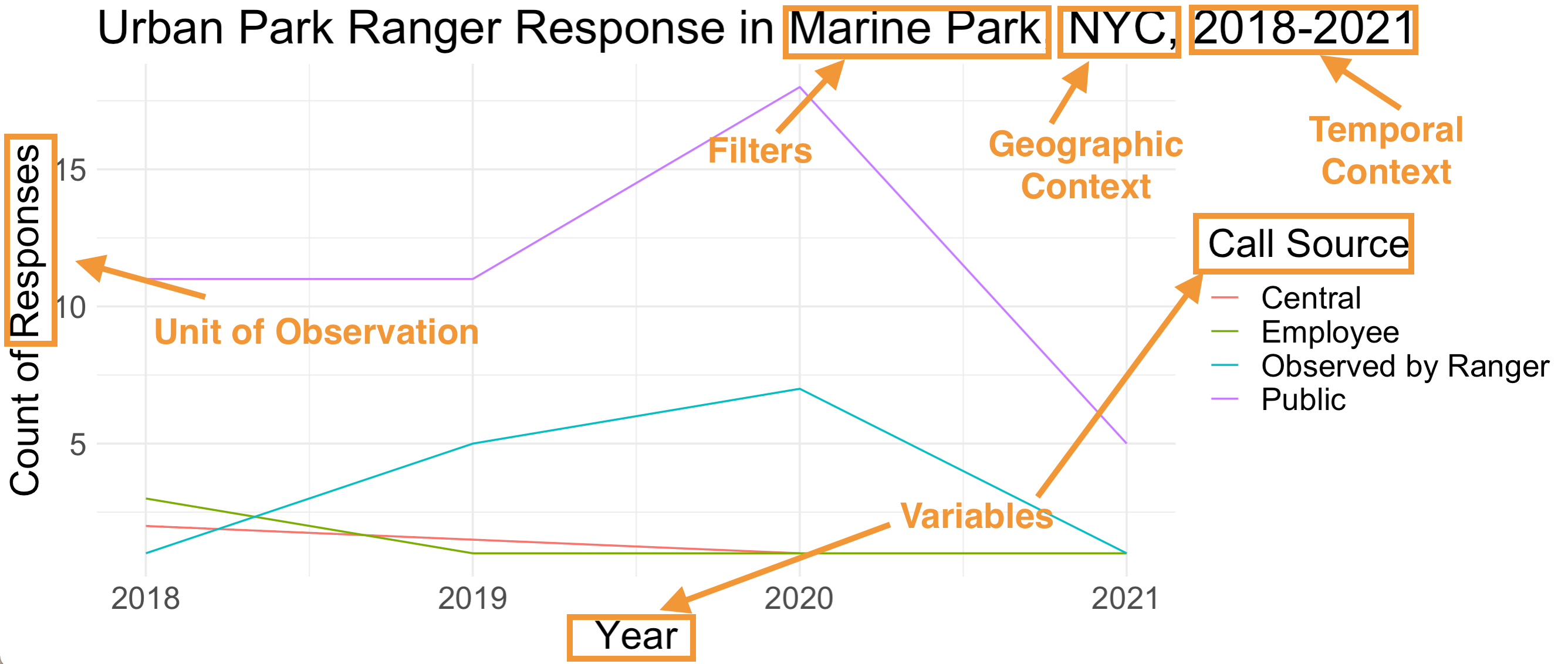 In every plot you submit for this class, I will be looking for five pieces of context.